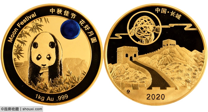 连续2枚2016年夏威夷州钱币协会熊猫1公斤金币,评级均为NGC-PF70UC,估价同为7万-8万美元;2020年熊猫1公斤金币,NGC-PF70UC,竹子霜化,熊猫憨态可掬,估价7万-8万美元;2020年中秋佳节/花好月圆双金属熊猫1公斤金章,NGC-PF70UC,币面有“中秋佳节/花好月圆”字样,币中蓝色月亮采用钛金打铸,估价7万-8万美元。